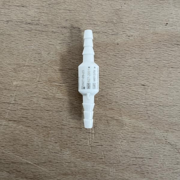 Raccord de sécurité Fire Safe. Ce raccord agit comme un fusible de sécurité et se place entre la source d'oxygène et la tubulure. En cas de départ de feu au niveau des lunettes, il évite au feu de remonter jusqu'à la source d'oxygène.