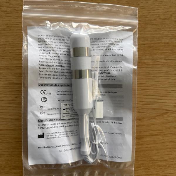 Cette sonde vaginale avec 2 bagues est compatible avec l'électrostimulateur neuromusculaire UROSTIM 2 et plus largement avec l’ensemble des électrostimulateurs SCHWA MEDICO. La sonde est pourvue de 2 fiches bananes femelles qui se connecte à l'électrostimulateur via les 2 fiches mâles du câble de connexion. Le câble n'est pas fourni avec la sonde mais avec votre appareil d'électrostimulation.